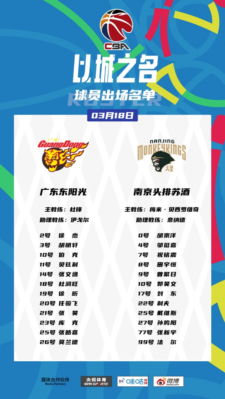 2025-03-18 21:36:29廣東VS同曦大名單:徐杰胡明軒徐昕領銜 郭昊文法爾在列