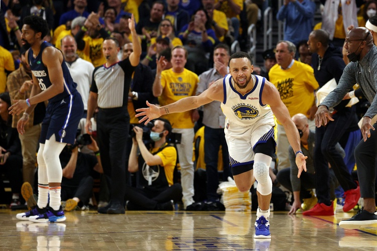 2021-22賽季,兩屆常規(guī)賽MVP得主庫里以34歲的年齡成為了最年長的西部決賽MVP得主。在那年的西部決賽中,勇士經過五場比賽淘汰獨行俠,庫里場均得到23.8分6.6籃板7.4助攻,三分命中率為43.9%。
