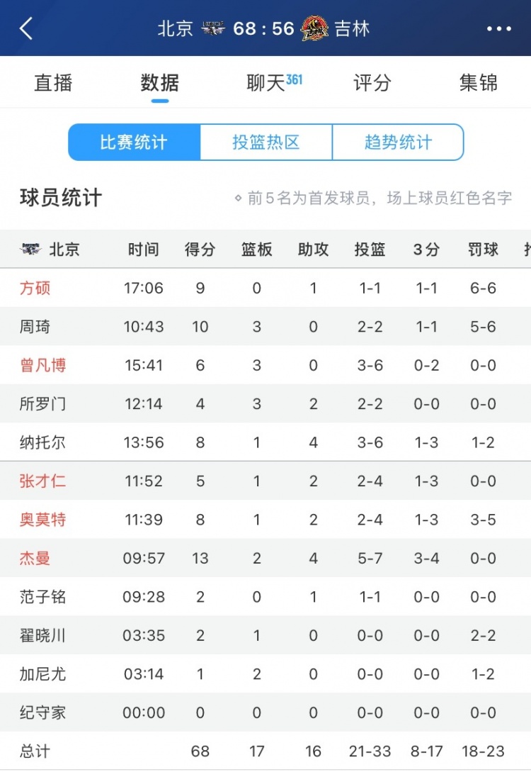 2025-03-19 20:49:40全民皆兵!北京半場11人出場輪換皆有得分入賬 周琦10分&杰曼13分