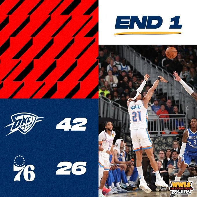 2025-03-20 11:32:57輪休主力仍火力十足!雷霆第一節轟下42分 創賽季首節新高