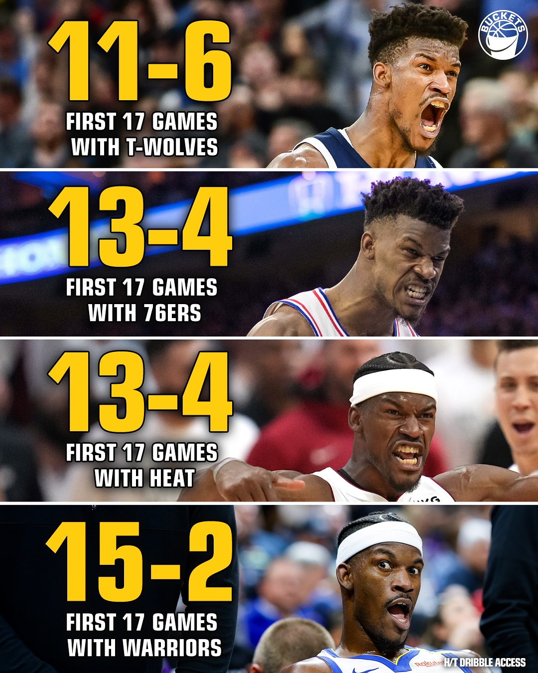 2025-03-21 17:01:27吉米效應?巴特勒生涯四次轉會后前17場比賽 勇士15-2戰績最好