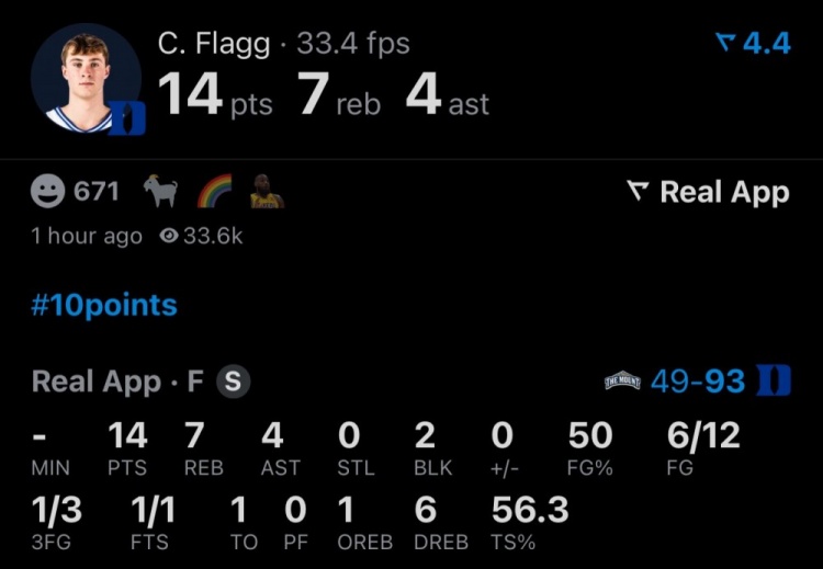2025-03-22 05:32:35弗拉格瘋?cè)仔?2中6輕取14分7板4助2帽 幫助杜克大勝圣瑪麗山!