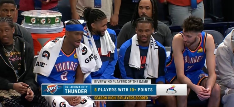 2025-03-22 21:27:35恐怖的深度!雷霆13人有得分入賬創賽季新高 其中8人得分上雙!