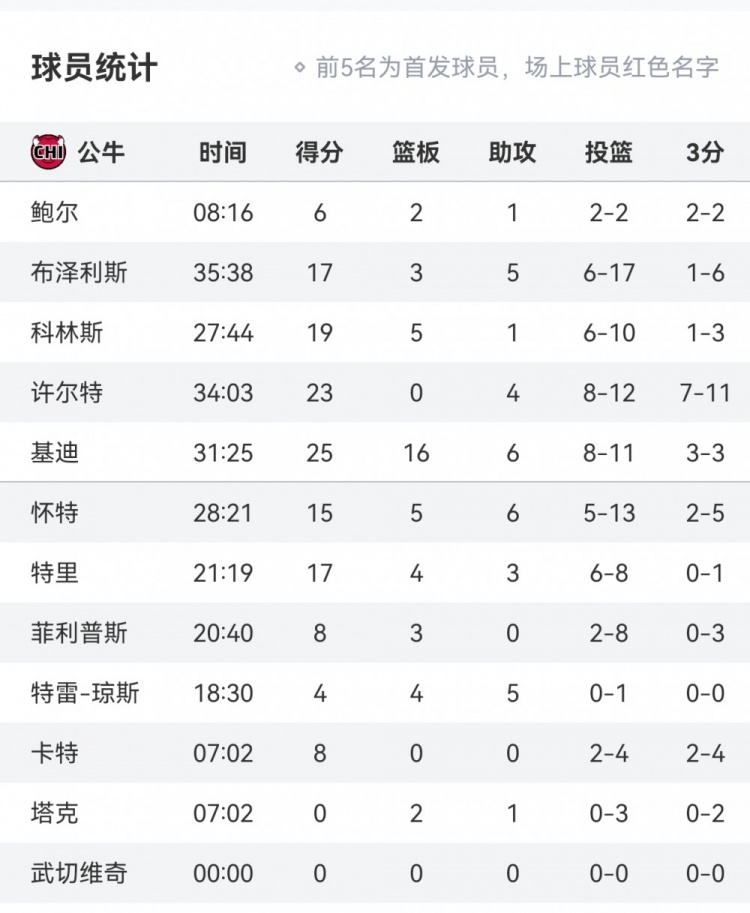 2025-02-25 15:13:45無敵!公牛全隊(duì)轟下142分&6人得分15+ 基迪25分/許爾特23分