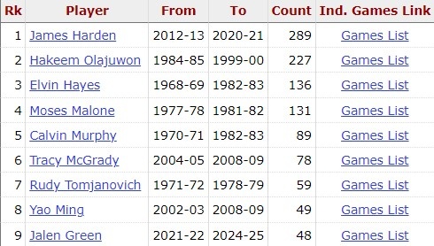 2025-03-26 13:35:53杰倫-格林生涯第49場比賽30+ 追平姚明 并列火箭隊史第8位