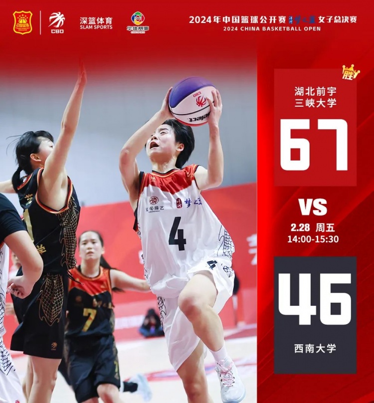 2月28日,2024年中國(guó)籃球公開(kāi)賽洋河夢(mèng)之藍(lán)女子總決賽進(jìn)入到第四個(gè)比賽日。在本輪中,湖北前宇三峽大學(xué)、云南隊(duì)、湖南師范大學(xué)獲勝。