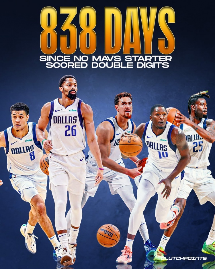 2025-03-05 08:46:16上次獨(dú)行俠沒有首發(fā)得分上雙已838天 可以追溯到2022年11月17日