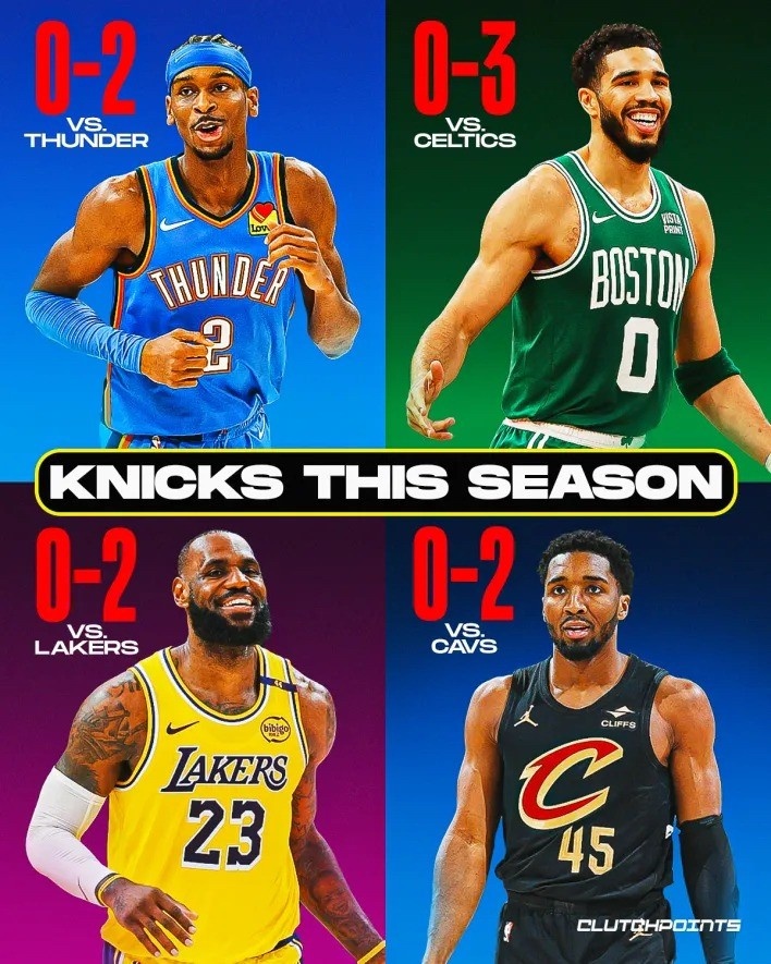 2025-03-07 16:35:45欺軟怕硬?尼克斯本季對聯盟前四騎士/雷霆/綠軍/湖人共0勝9負