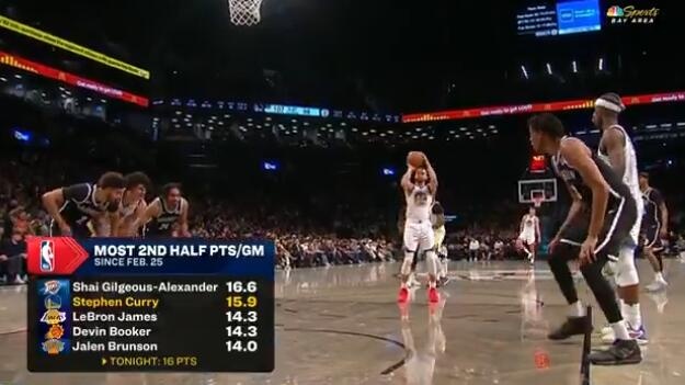 2025-03-07 16:55:442月25日以來下半場場均得分:庫里15.9僅次于SGA 詹姆斯排第三