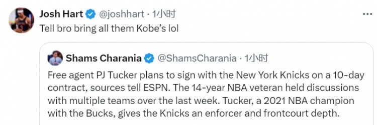 塔克10天合同簽尼克斯!哈特調侃:兄弟把你的科比鞋都帶上