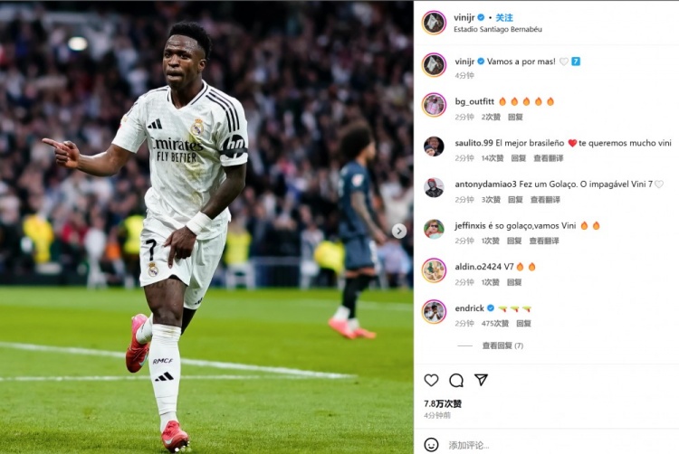 2025-03-10 03:16:45維尼修斯社媒慶祝勝利:讓我們繼續前進贏得更多!