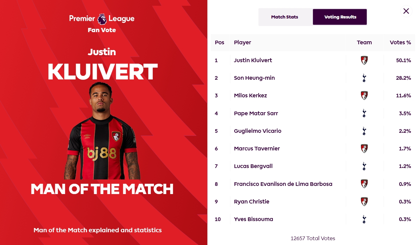 2025-03-10 03:19:31送出助攻!英超官方:小克魯伊維特當選伯恩茅斯2-2熱刺全場最佳