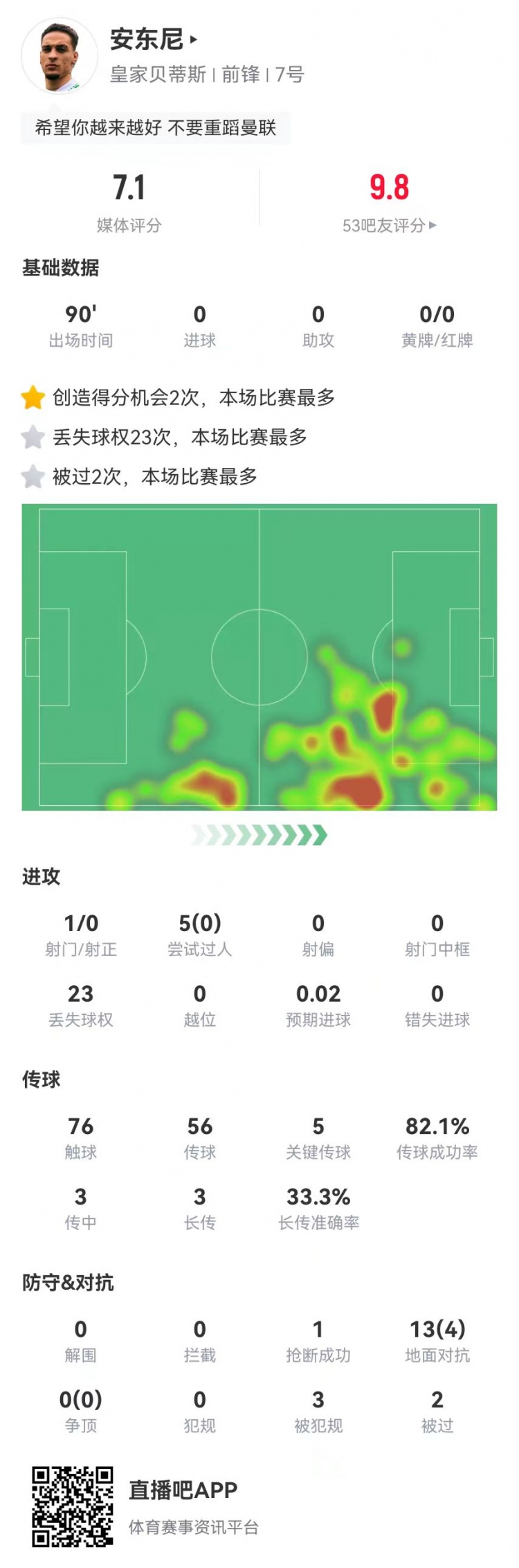 2025-03-10 07:06:15安東尼本場5關鍵傳球+2造良機+3造犯規 5過人0成功+23丟失球權
