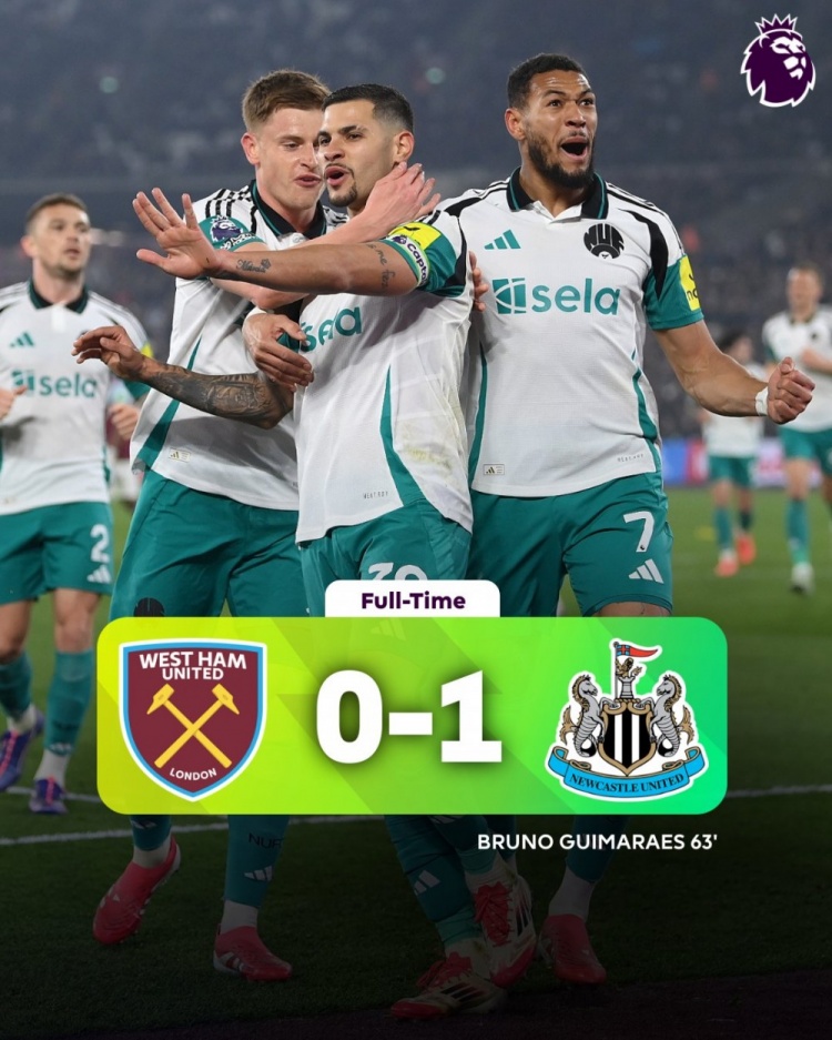 2025-03-11 11:35:35吉馬良斯制勝勝紐卡客場1-0擊敗西漢姆聯,喜鵲積分已追平曼城