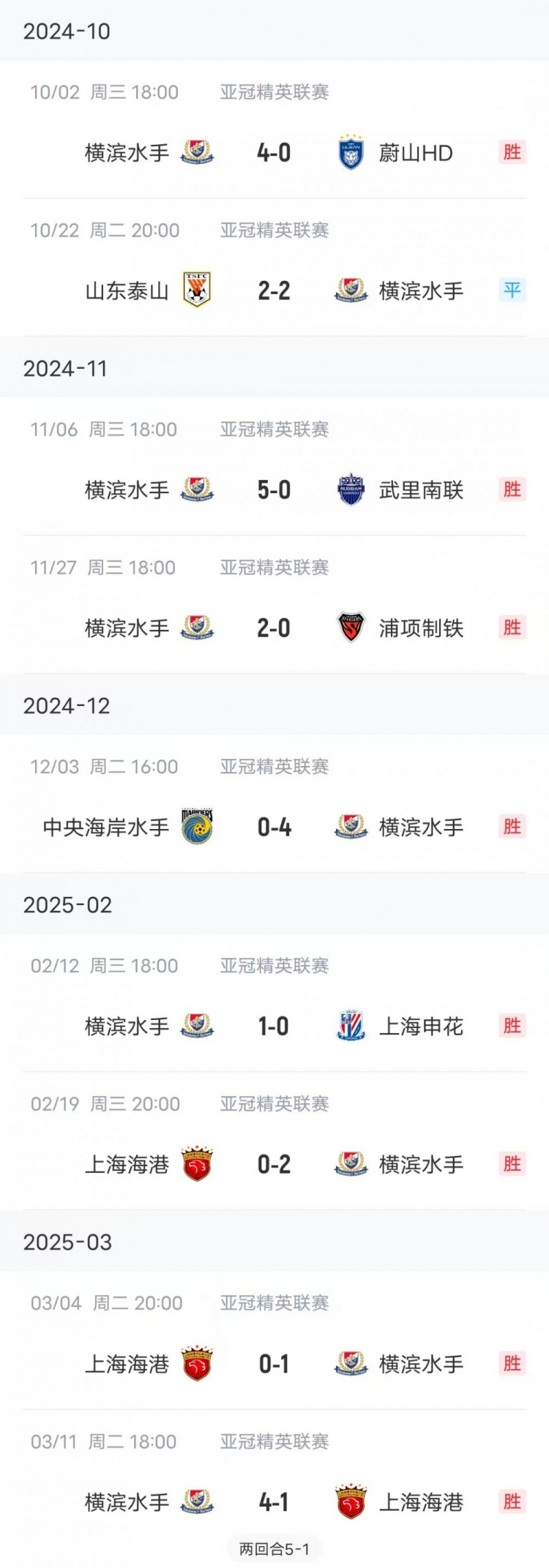 而在亞冠賽場,橫濱水手則換了“畫風(fēng)”,自從去年9月17號不敵光州之后,橫濱已經(jīng)在亞冠連續(xù)9場不敗,最近7場更是取得全勝。