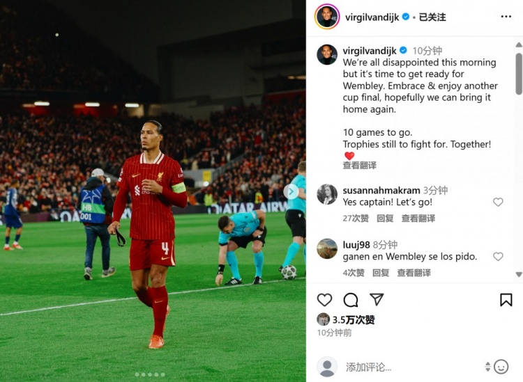 2025-03-12 20:25:50范迪克社媒鼓勵球隊:賽季還剩10場比賽,還要為冠軍而拼搏!