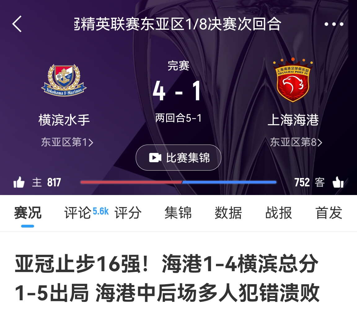 2025-03-12 20:27:04中超冠亞軍!海港昨天客場1-4慘敗橫濱,申花今天客場0-4慘敗川崎