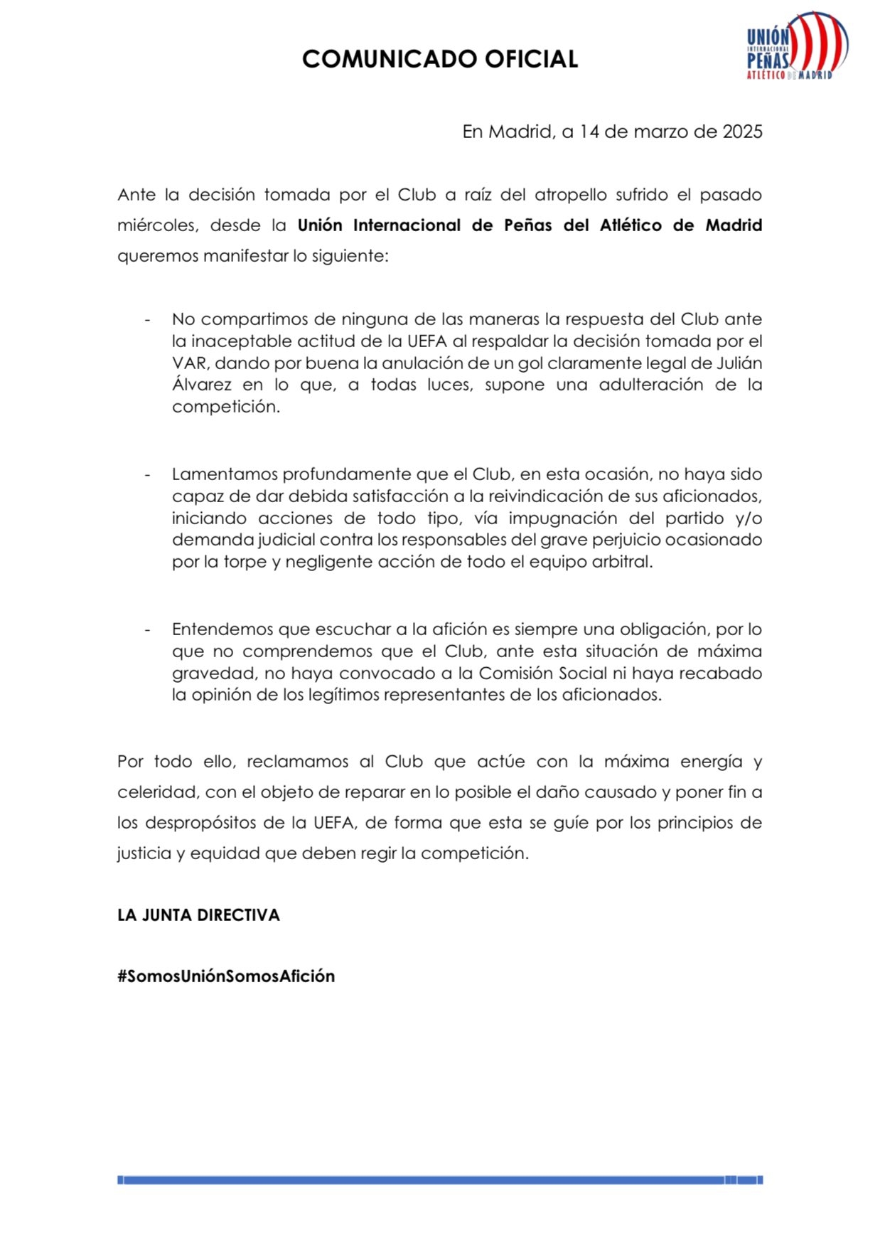 據西媒El Desmarque報道,因已超過24小時時限,馬競已無法對阿爾瓦雷斯點球被取消進行上述。
