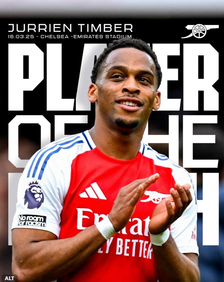 2025-03-17 11:24:569次贏得對抗,阿森納官方:廷伯當選對陣切爾西隊內(nèi)最佳球員