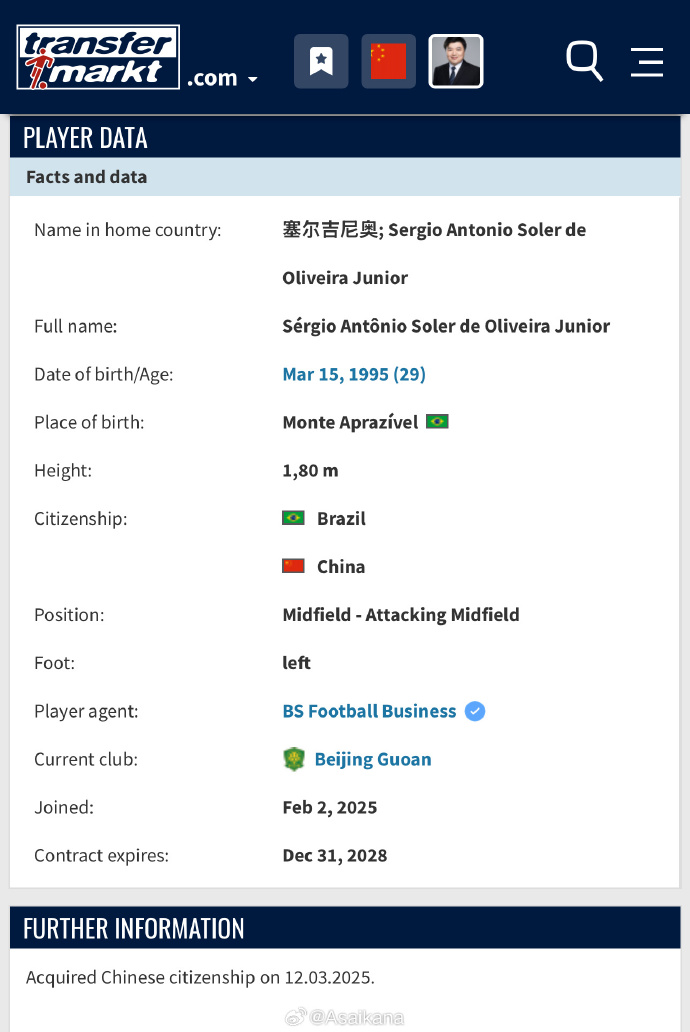 在此之前,塞爾吉尼奧就多次表達了自己想要被歸化的態度,雖然表態上不如奧斯卡那么“猛烈”,不過也足夠誠懇。一方面他跟中國足球、亞洲足球結緣許久,雖然不是正統的“華夏人”,不過對中國足夠熟悉了,因此想要入籍也是可接受的;另一方面對他來講加入中國男足爭取世界杯的參賽機會,也是職業生涯努力的重要方向,在此之前他可是沒有資格在巴西入圍各級梯隊的,國字號隊伍的成就,還要在“新的空間”才有機會去實現。