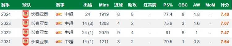 此外,在防守的積極性上也有提升的。2024賽季,他可貢獻場均1.1次搶斷、0.5次攔截及1.1次解圍,三項數據在10號位的中超球員中排名靠前。