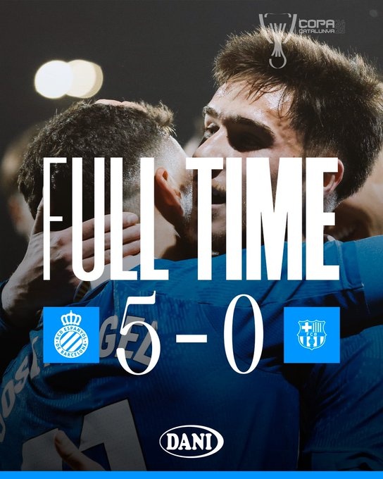 2025-03-20 07:01:34西班牙人加泰杯半決賽5-0大勝巴薩,巴薩全青年隊&弗里克沒帶隊