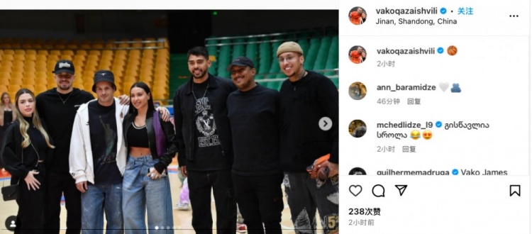昨日山東泰山外援卡扎伊什維利更新社媒,曬出自己和家人朋友在濟南現場觀看CBA常規賽山東vs廣州的比賽,賽前他還秀了一把籃球技巧,罰籃空心入網。