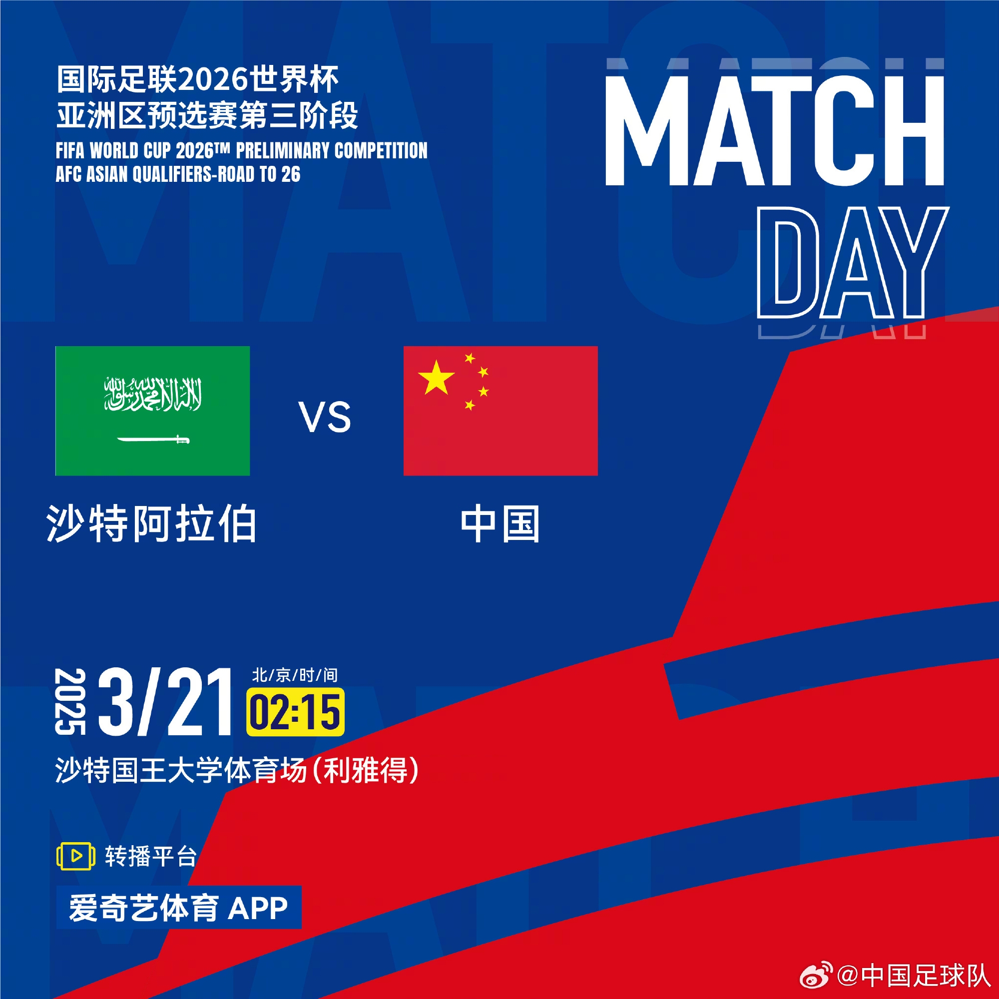 2025-03-20 17:42:24中國國家男子足球隊將在客場對陣沙特阿拉伯國家男子足球隊