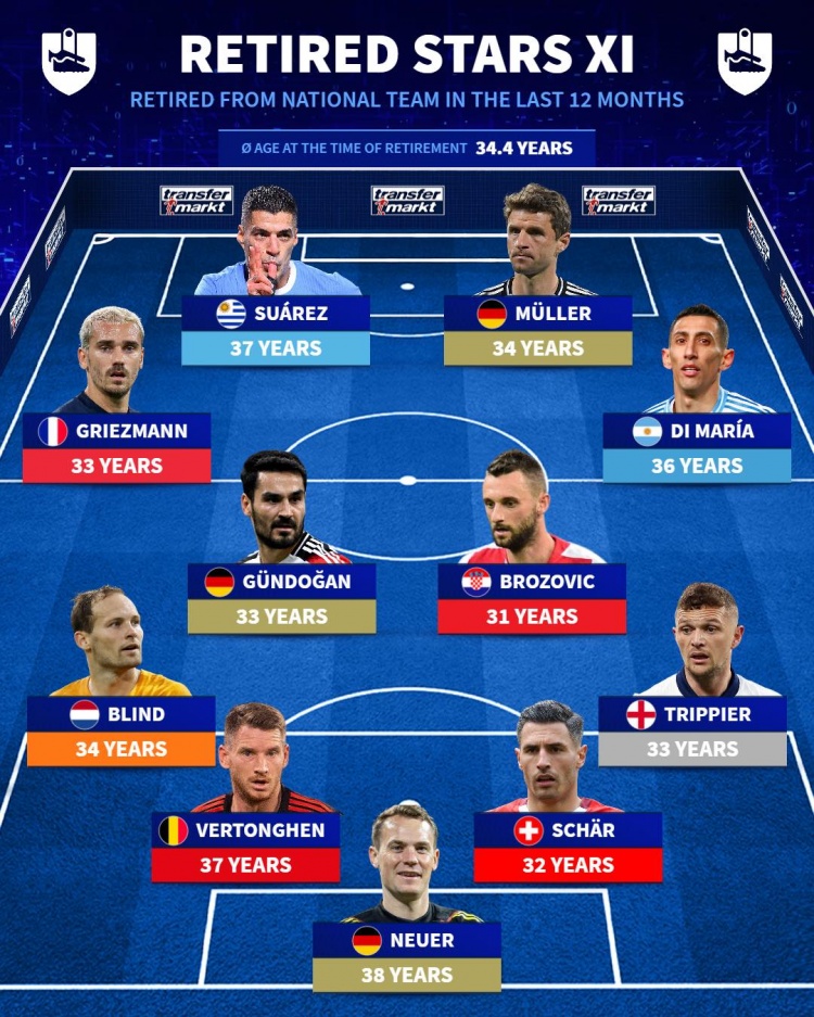 2025-03-23 07:30:55近一年國家隊退役球星陣容:蘇牙、穆勒、天使、諾伊爾在列
