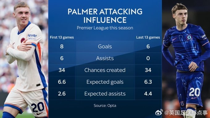 2025-02-25 20:03:10天空體育:帕爾默過去13場英超創(chuàng)造34次機(jī)會,但沒有收獲一個(gè)助攻