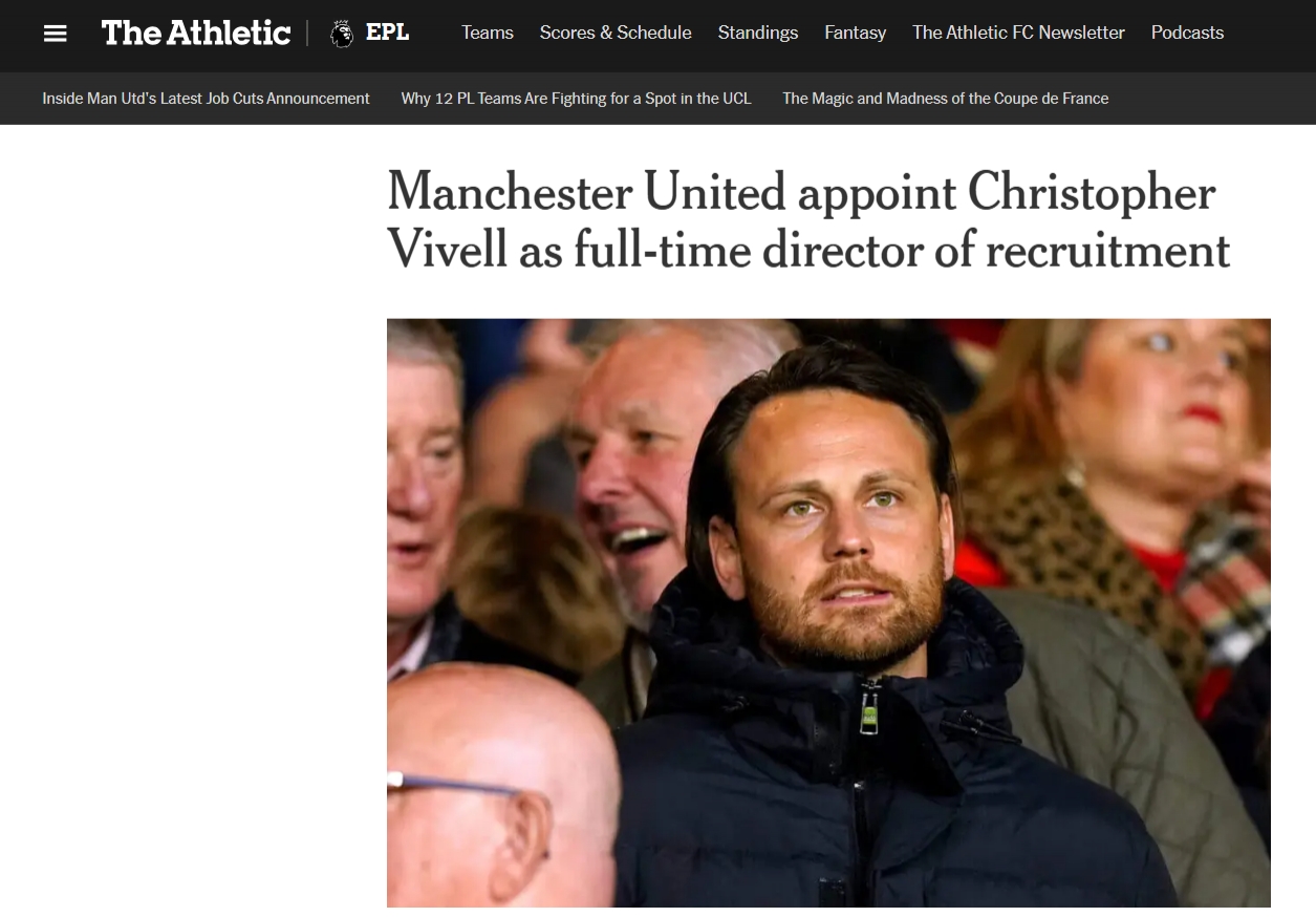 2025-02-26 00:09:43TA:曼聯任命維維爾為全球招募總監,合同中包含減薪條款