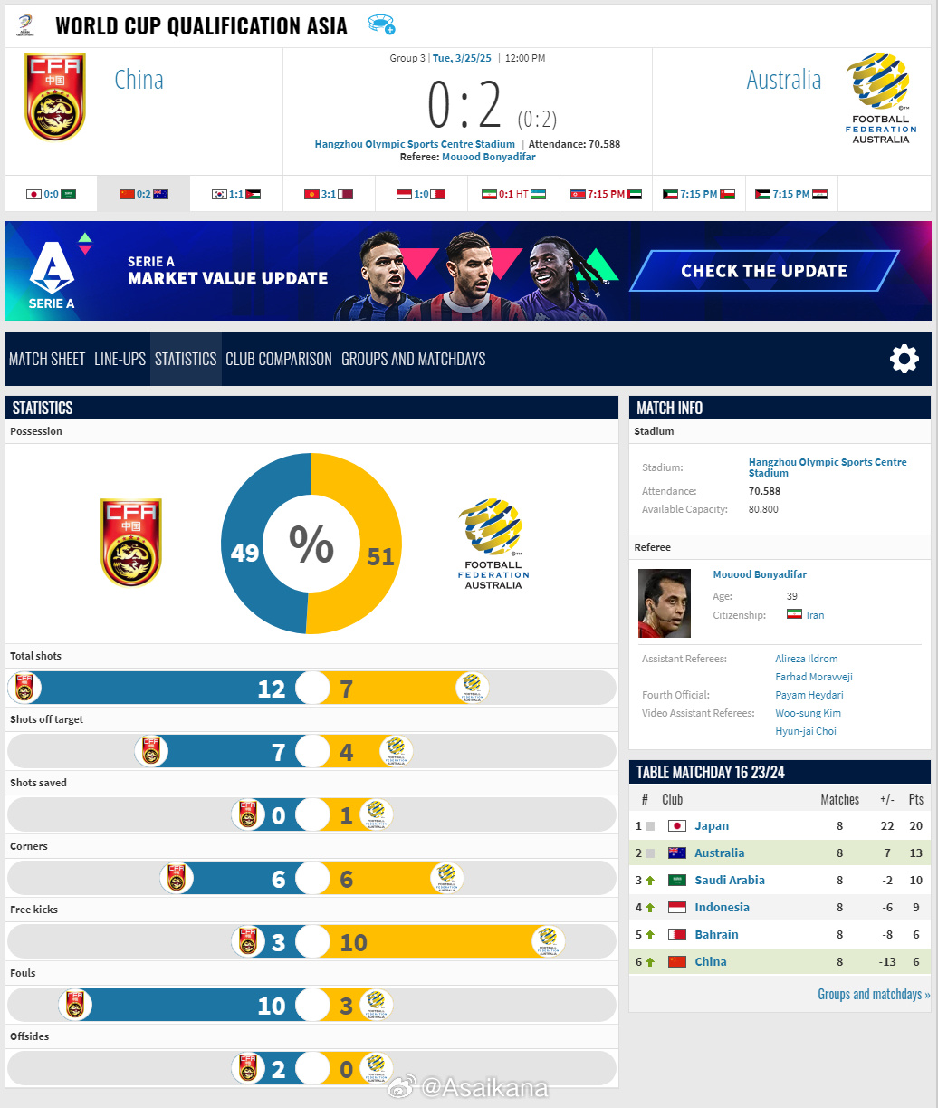 2025-03-26 03:56:272026年世界杯亞洲區預選賽,中國0-2澳大利亞比賽報告 ???