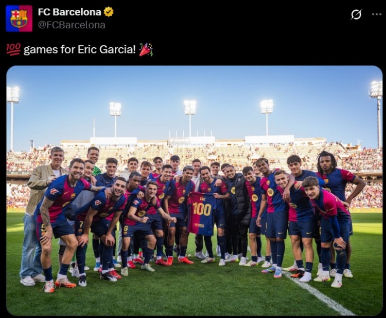 2025-03-31 01:59:30埃里克-加西亞迎巴薩百場(chǎng)里程碑,獲贈(zèng)紀(jì)念球衣&與全隊(duì)合影留念