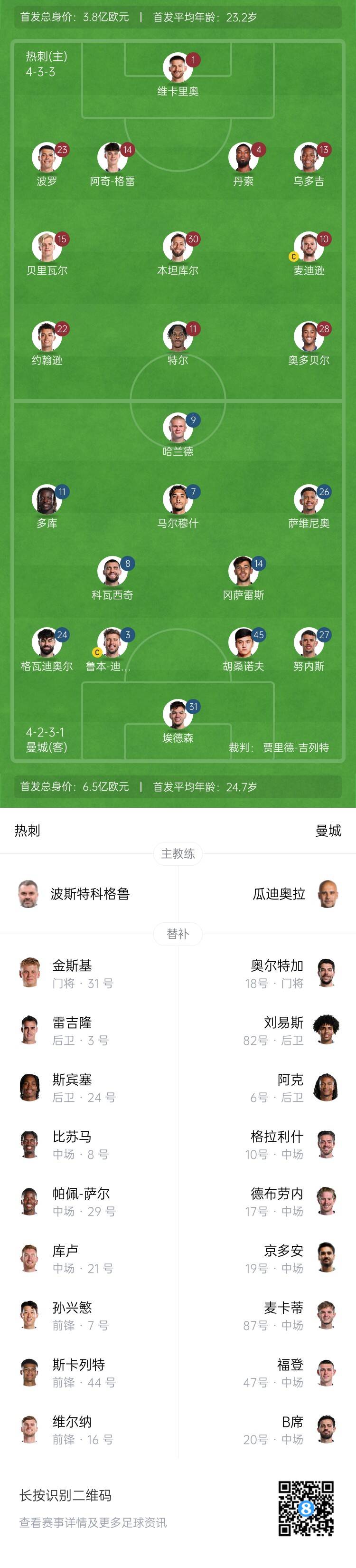 2025-02-27 05:00:41熱刺vs曼城首發:孫興慜替補,哈蘭德、馬爾穆什、多庫出戰