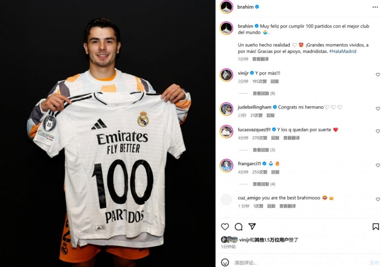 2025-02-27 10:01:02迪亞斯曬與紀(jì)念球衣合影:為世界最佳球隊(duì)出戰(zhàn)100場的夢想實(shí)現(xiàn)了