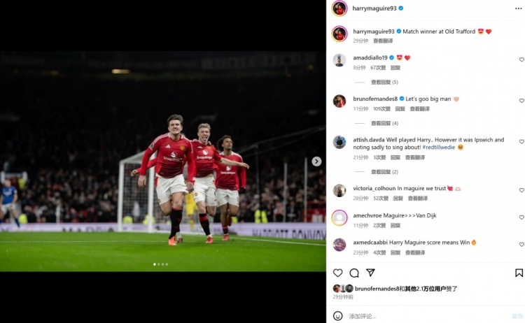 2025-02-27 10:01:0710人作戰(zhàn)逆風(fēng)取勝,馬奎爾社媒曬慶祝照:在老特拉福德打進(jìn)制勝球