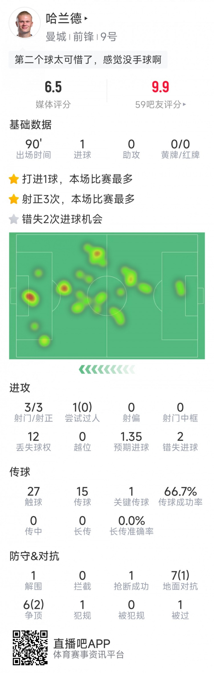 2025-02-27 10:02:09哈蘭德本場數據:1粒進球,3次射門均射正,2次錯失良機