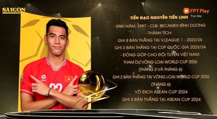 2025-02-27 20:05:36官方:27歲前鋒阮進靈獲得2024年越南足球金球獎