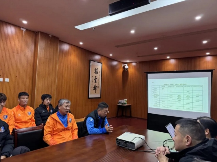 俱樂部執(zhí)行董事蘆寧江首先代表俱樂部歡迎球隊結(jié)束在外冬訓返回瑞昌基地,然后向球隊詳細介紹了俱樂部的情況、部門機構(gòu)等,并重點傳達了江西省體育局、江西省足球協(xié)會2025賽季中國足球聯(lián)賽(江西賽區(qū))工作部署會議精神,強調(diào)嚴格落實聯(lián)賽工作“五見面,五到位”;狠抓賽風賽紀建設,做到誠信比賽、干凈比賽。