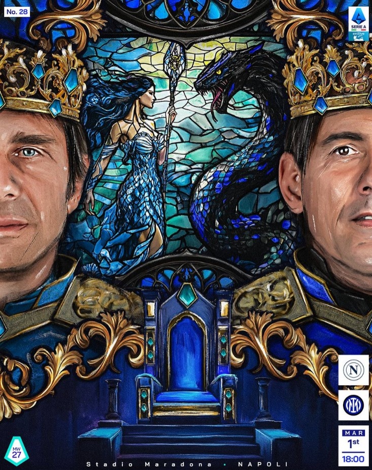 2025-03-01 20:25:29爭冠天王山之戰,意甲官方曬國米VS那不勒斯海報:孔蒂PK小因扎吉