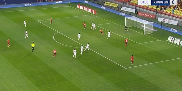 第12分鐘,津門虎后場長傳,哈達斯禁區內凌空端向中路,王秋明包抄打門得手,津門虎1-0領先蓉城。