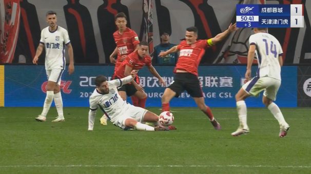 3月2日訊 北京時間3月2日18:30,中超第二輪,成都蓉城坐鎮五糧液文化體育中心專業足球場對陣天津津門虎。上半場,王秋明助津門虎取得領先,胡荷韜助攻韋世豪扳平,周定洋染紅。半場戰罷,蓉城暫1-1津門虎。
