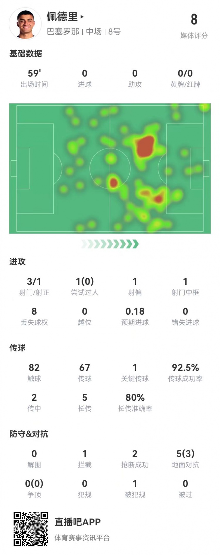 2025-03-03 01:29:21佩德里本場3射1中框 5長傳4成功 1關鍵傳球+2搶斷 獲評8.0分