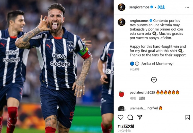 2025-03-03 16:08:00攻入蒙特雷生涯首球,拉莫斯:為艱苦的勝利和首球感到開心