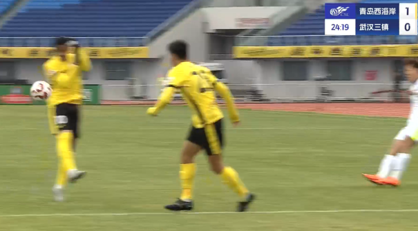 上半場補時3分鐘,青島西海岸1-0武漢三鎮。