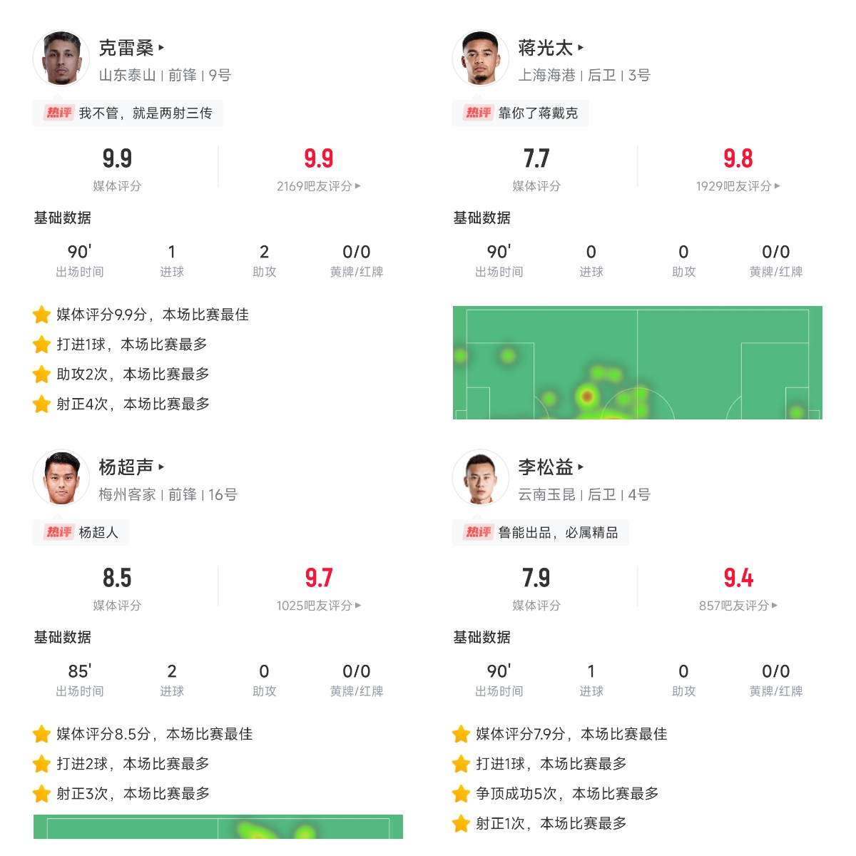 2025-03-04 11:34:47【直播吧】中超第二輪最佳球員:克雷桑毫無懸念當選,評分9.9!