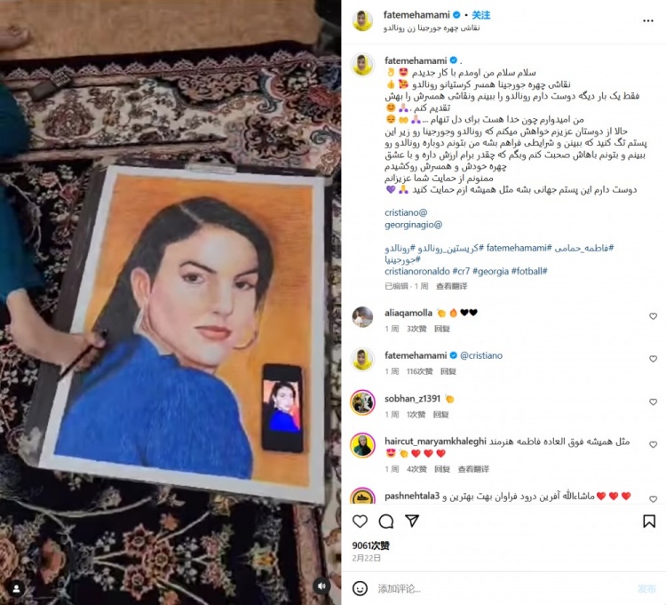 2025-03-04 23:28:22外媒:伊朗一畫家希望向C羅贈(zèng)送禮物,她為喬治娜準(zhǔn)備了畫作