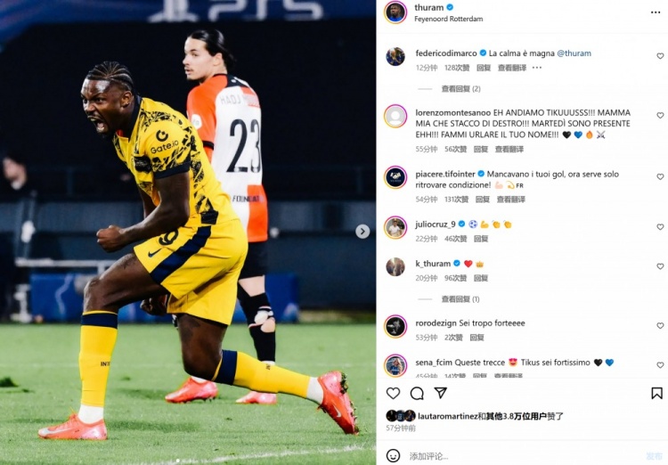 2025-03-06 13:17:34鋒線雙星雙雙破門,勞塔羅&小圖拉姆社媒曬怒吼慶祝照