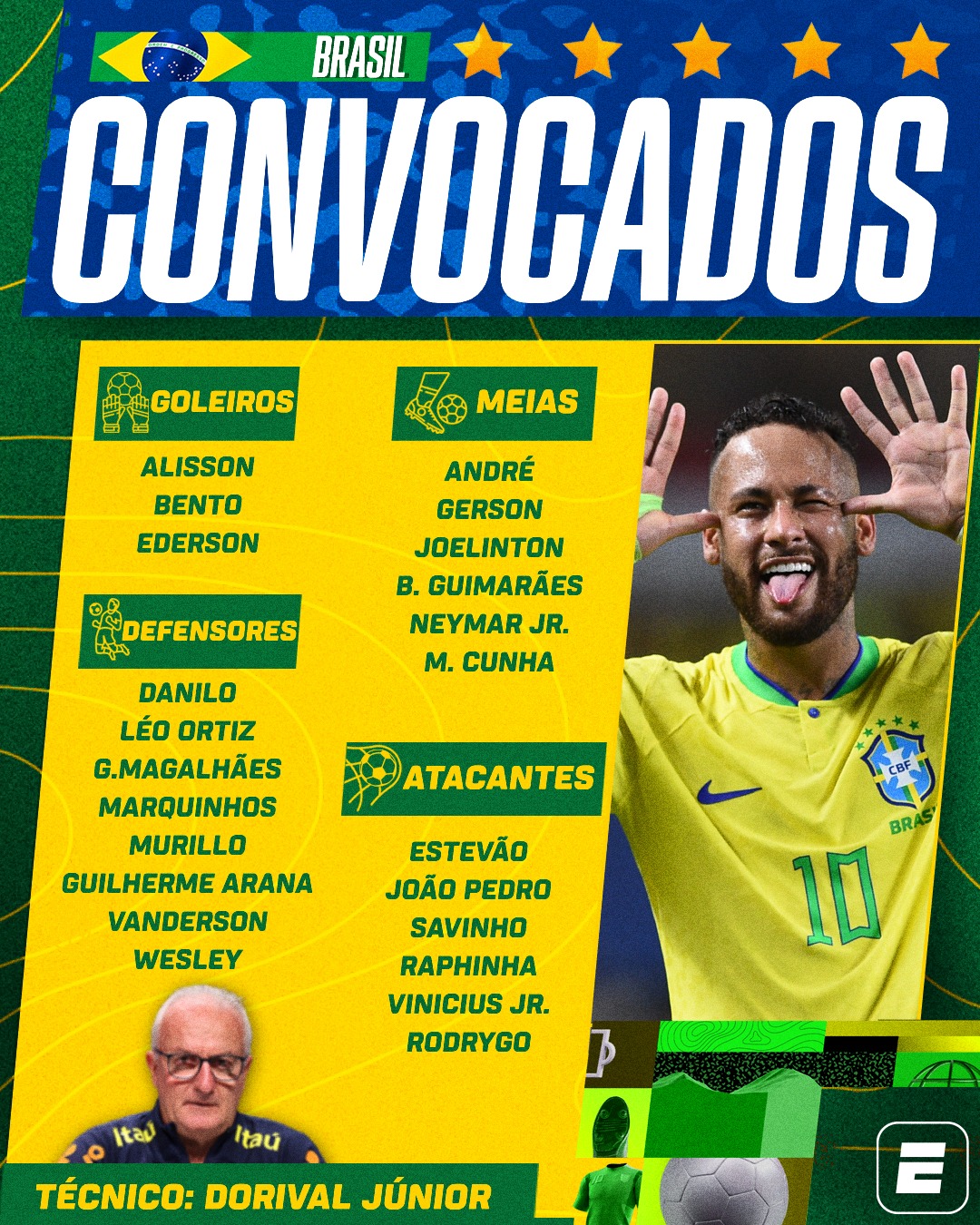 2025-03-06 22:40:16將戰阿根廷!巴西新一期名單:內馬爾時隔1年半回歸!安東尼無緣
