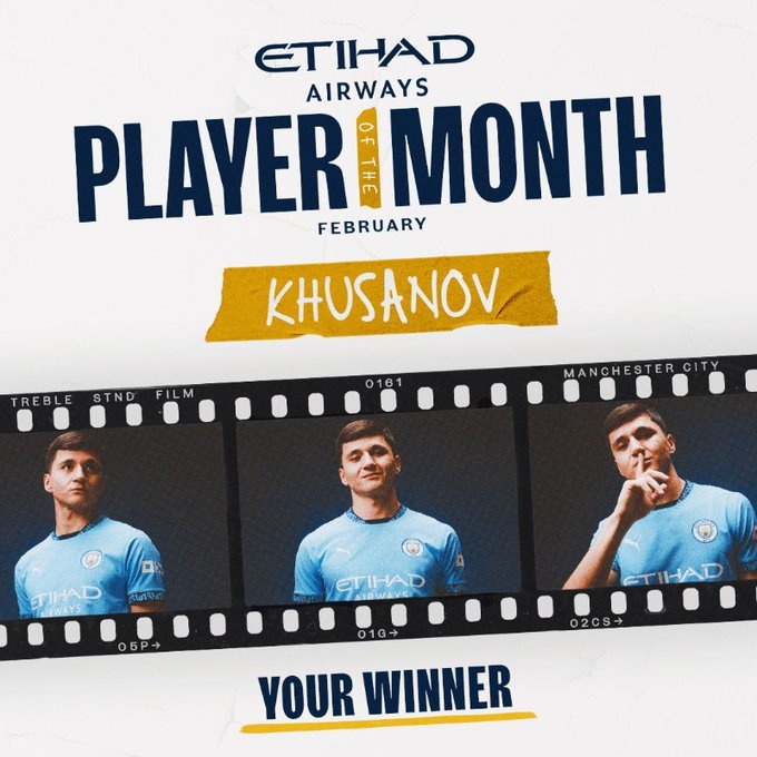 2025-03-07 01:30:46即插即用!官方:胡桑諾夫當選曼城2月最佳球員